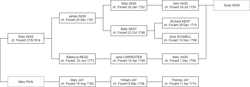 Silas and Mary had been living in Everleigh, Wilts but Silas originally came from Fovant, as did Mary's mother Mary Pain (née Jay)